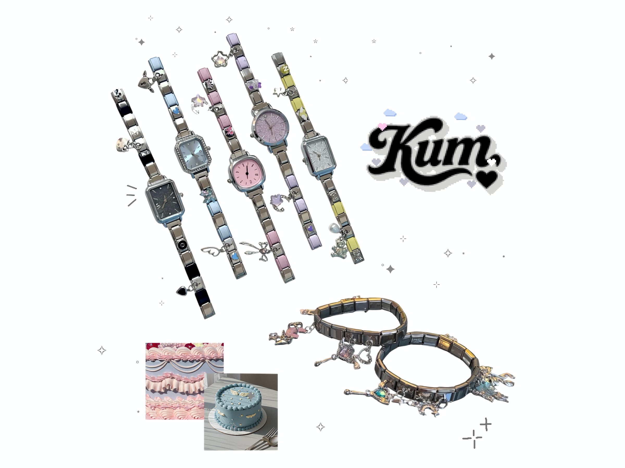 ※イタリアンチャームは付属せず、時計本体のみの販売です。 時計本体が星の形の時計です⭐︎ ポップなデザインになってます♡ こちらの時計は、左手につけるとデザインが内側になる仕様です。右手につける場合は、デザインが外側になります。向きが気になる方やご希望がある方は、お気軽にDMください♡ ご購入前に、必ずご自身の腕のサイズを測ってからお選びください。 イタリアンチャームは、腕のサイズに合わせて粒数を調整してお作りいただきます。 一般的な女性の平均的な手首サイズ(約15〜16cm)の場合、イタリアンチャームは 約17〜18粒 が目安でございます。 【粒数の目安】 ・手首 約14〜15cm:16〜17粒 ・手首 約15〜16cm:17〜18粒(平均) ・手首 約16〜17cm:18〜19粒 ※ 時計パーツ1点で約6粒分となります。 時計を入れる場合は、その分を含めた無地パーツのご購入をお願いいたします。 ※無地パーツ・組み立てスプーンは付属しておりません。 必要な場合は、商品オプションより別途ご購入ください。 ⚪︎サイズ選びや粒数が分からない場合は、kum(@kum_shibuya)のInstagramにてお気軽にご相談ください。 ▽ご注意事項 ※強い力を加えると破損の原因となります。 ※水濡れ・汗・摩擦により、変色する場合がございます。 ※画像は実物に近い色味で撮影しておりますが、撮影環境や光の加減により、実際の商品と多少異なって見える場合がございます。 ※電池は消耗品です。動かなくなった場合は、電池交換にてご対応ください。